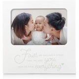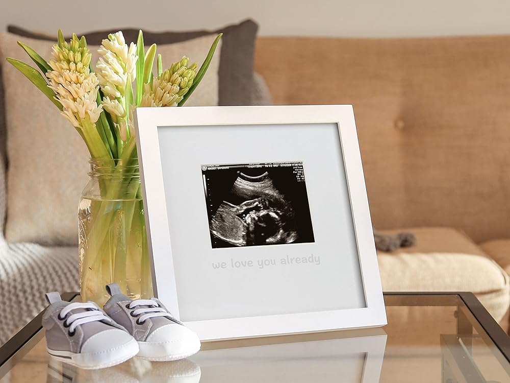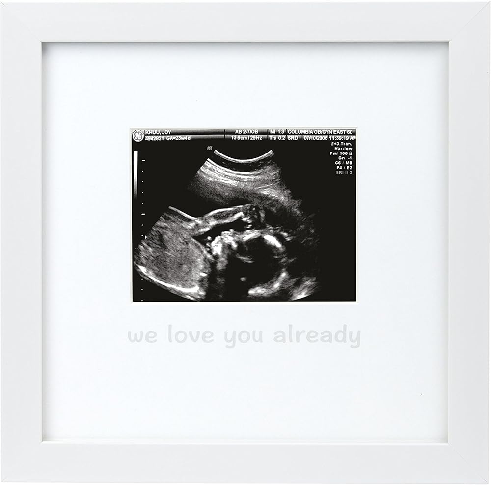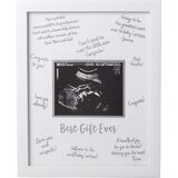 Tiny Ideas White Love at First Sight' Sentiment Sonogram Frame is the ideal way to display your first sonogram photograph! You've been in love with your baby ever since you first watched those two telltale lines appear and now you have your first glimpse of the life you carry inside. This keepsake photo frame allows you to proudly display your little darling's very first picture. That tiny sonogram photo will be the most meaningful picture you'll ever have. Before you ever meet your baby, your unique sonogram gives you a hint at what your baby might look like. This unique frame is the perfect sonogram gift, the neutral colors make it a perfect addition to your nursery decor or photo gallery wall. Simply slide your sonogram photo into the 4x6-inch photo insert and you have a personalized keepsake that enhances your home with sentimental style. This Tiny Ideas "Love at First Sight" Sentiment Sonogram Frame features a sturdy frame that's accented with a crisp white border and metallic lettering that lovingly reads, "love at first sight." This frame features attached wall hangers for displaying on a wall and a folding easel backing for use on tables, shelves or mantels. Each time you pass your memento, you'll remember those times early in your pregnancy with fondness and joy. Don't forget to include this sonogram keepsake on your own baby gift registry. This darling frame also makes a truly thoughtful baby shower gift for any new mommy or mommy-to-be in your life.