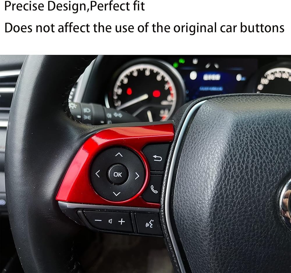3PCS ABS Red Steering Wheel Button Cover Sticker Interior Decoration Sticker Accessories Trim for Toyota Camry 2018 2019 2020 2021 2022 2023 2024,for Toyota Avolon 2019 2020 2021 2022
