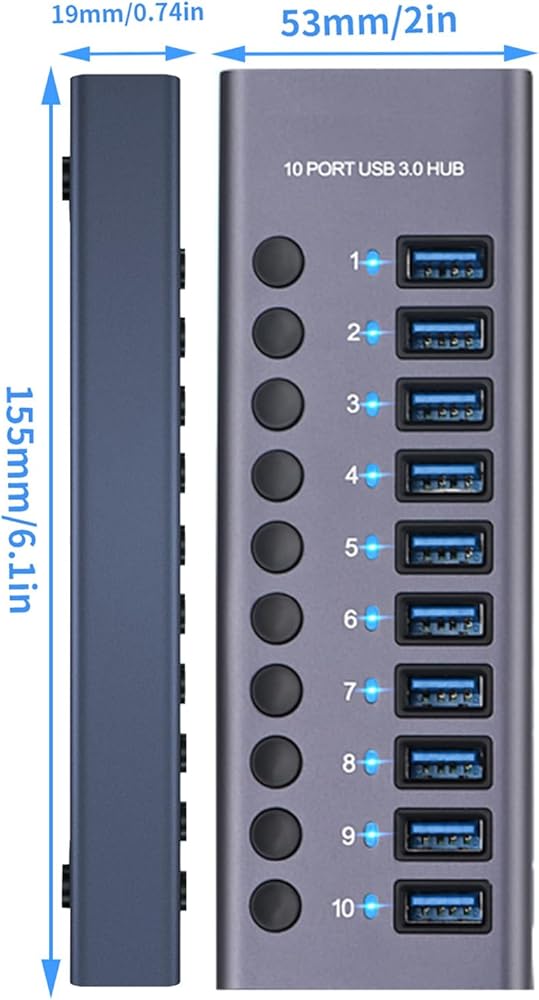 【Exquisite exterior design】The USB3.0 hub is made of sturdy aluminum material with a unique exterior design. All 7 ports have independent switches and are equipped with LED lights, and the status of the required ports can be checked before use(The led of PD port only can be lit when the device is connectted)