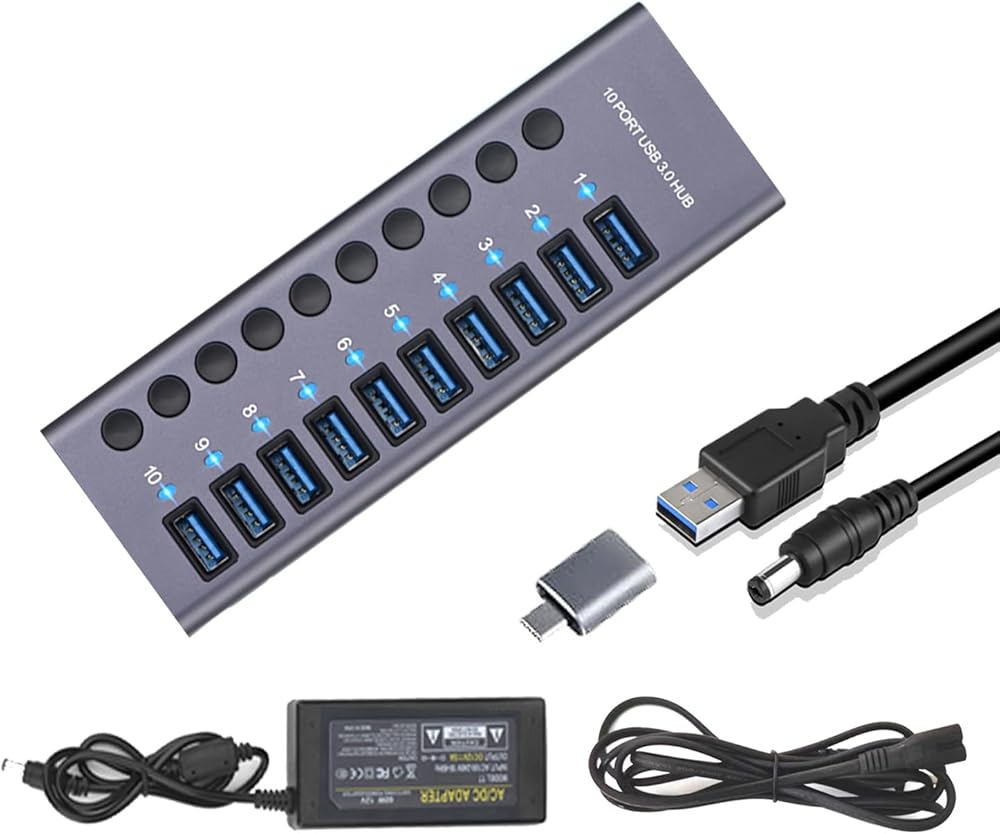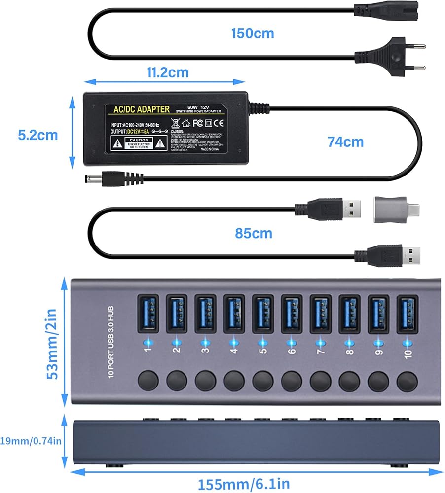 【Package including】1 x 7 port aluminum hub; 1 x36W (12V/3A) American power adapter ;1 x USB 3.0 cable; 1 x user manual; 1 x Aluminum USB to USB C adapter;12 month warranty; 24 hour friendly customer service and email support