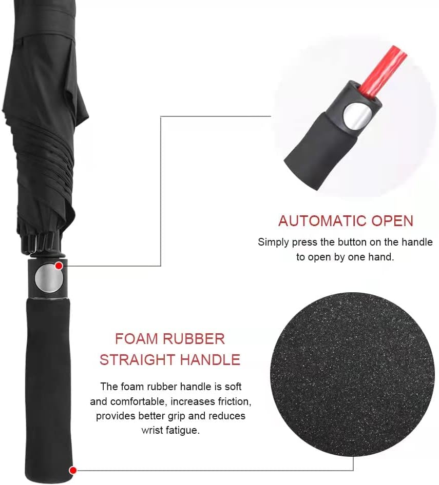 Golf Umbrella Automatic Open 56" Rain Windproof UV Protection Large Umbrella Perfect Car Stick Umbrellas Business Black Umbrella for 2-3 People, With Striking Reinforced Fiberglass Frame and Non-Slip Handle