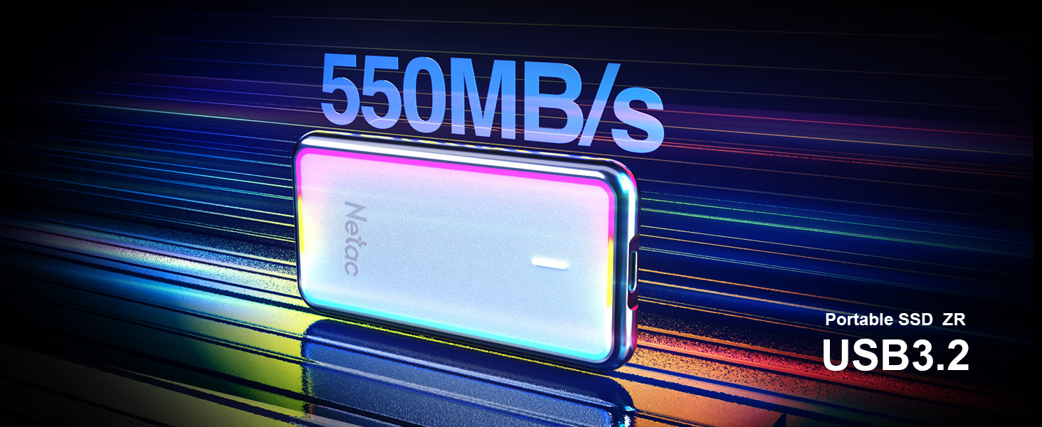 【Gaming Portable SSD】Netac ZR 500GB Portable SSD provide file transfer at speeds up to 550 MB/s read and 450 MB/s write ultra speed, equipped USB 3.2 Gen 2 interface.