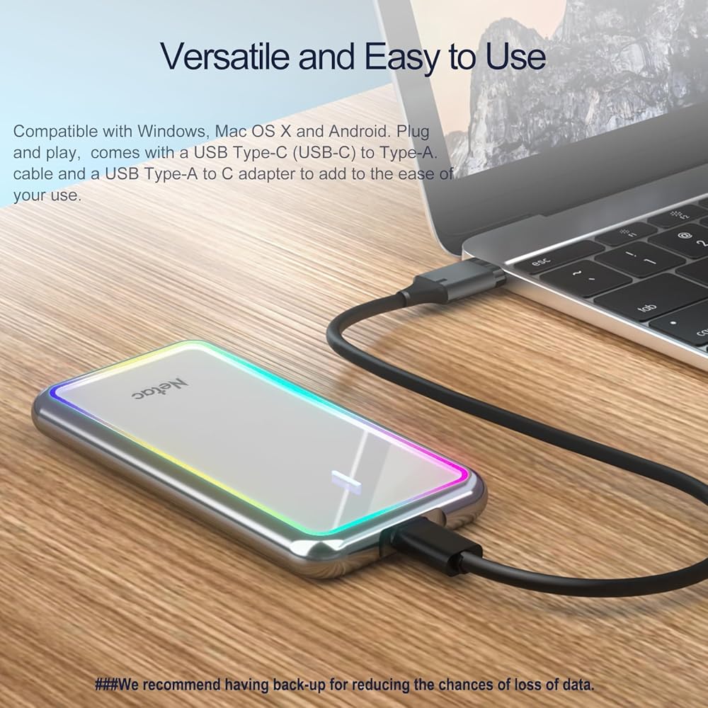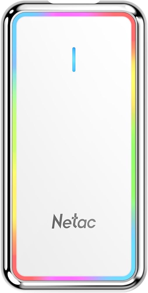 Netac 250GB Portable SSD with RGB LED Lighting USB 3.2 Gen 2 External Solid State Drive Up to 550MB/s Backup Slim Drive for File Storage/Business Travel Essential, Rapid Read & Write Low Noise, ZR