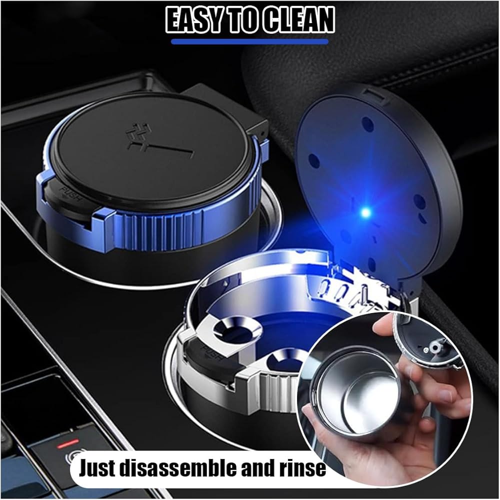 Car Ashtray with Lid Smell Proof, Detachable Stainless Smokeless Ash Tray with LED Blue Light, Portable Mini Car Trash Can, Windproof Auto Ashtray Cup Holder for Car Home Outdoor Travel (Blue)
