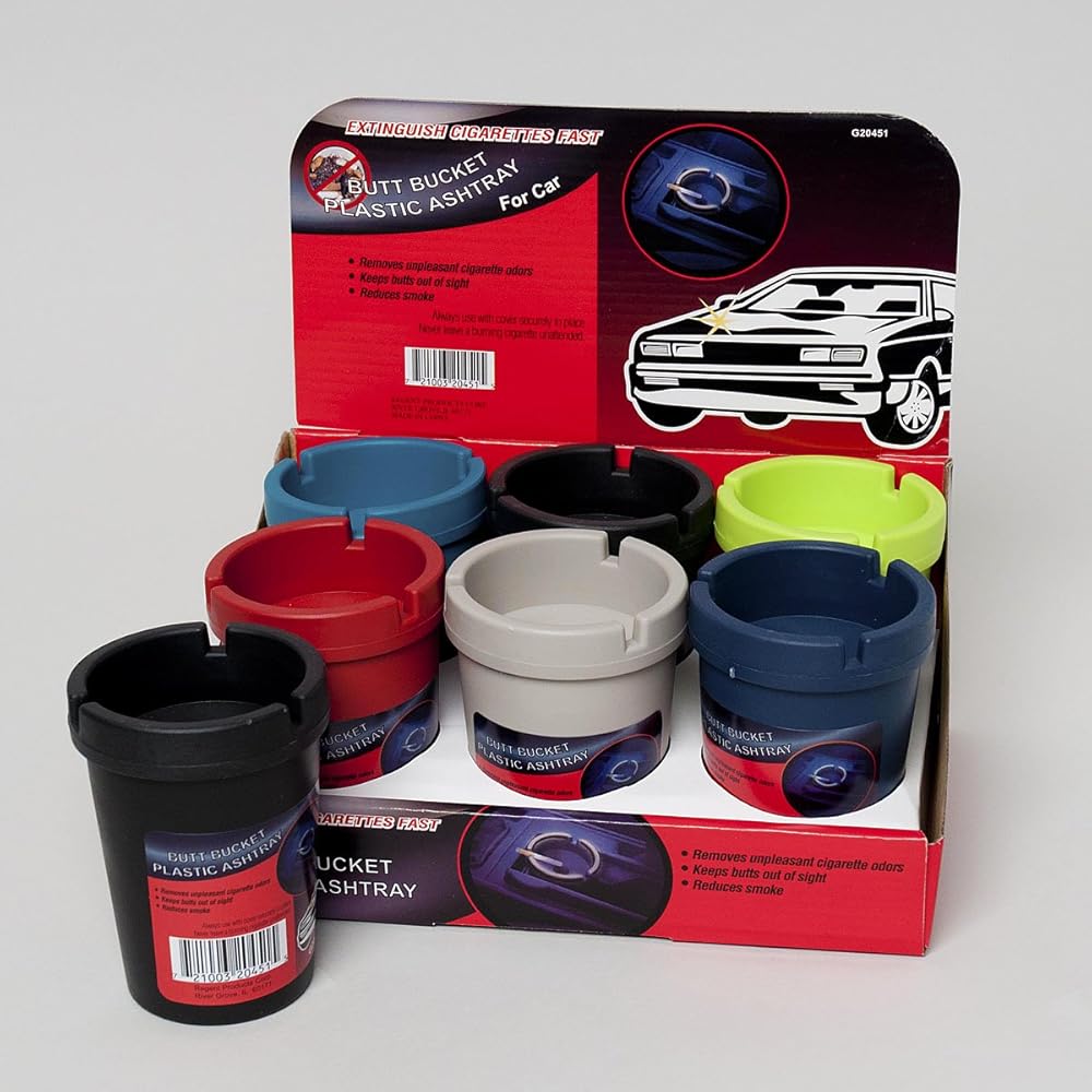 Set of 3 Butt Bucket Plastic Ashtray Assorted Colors 4-1/4" x 3" (Set of 3 Plastic)