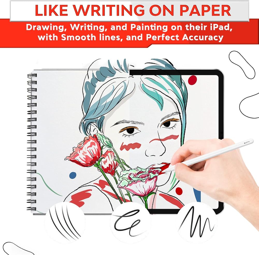 【Take notes with Ease】:iPad pro 12.9 screen paper creates a feeling close to that of paper, restoring a true paper feel, making note-taking, writing, and drawing a breeze. and it has high touch response which minimizes pen slippage making drawing lines easier.