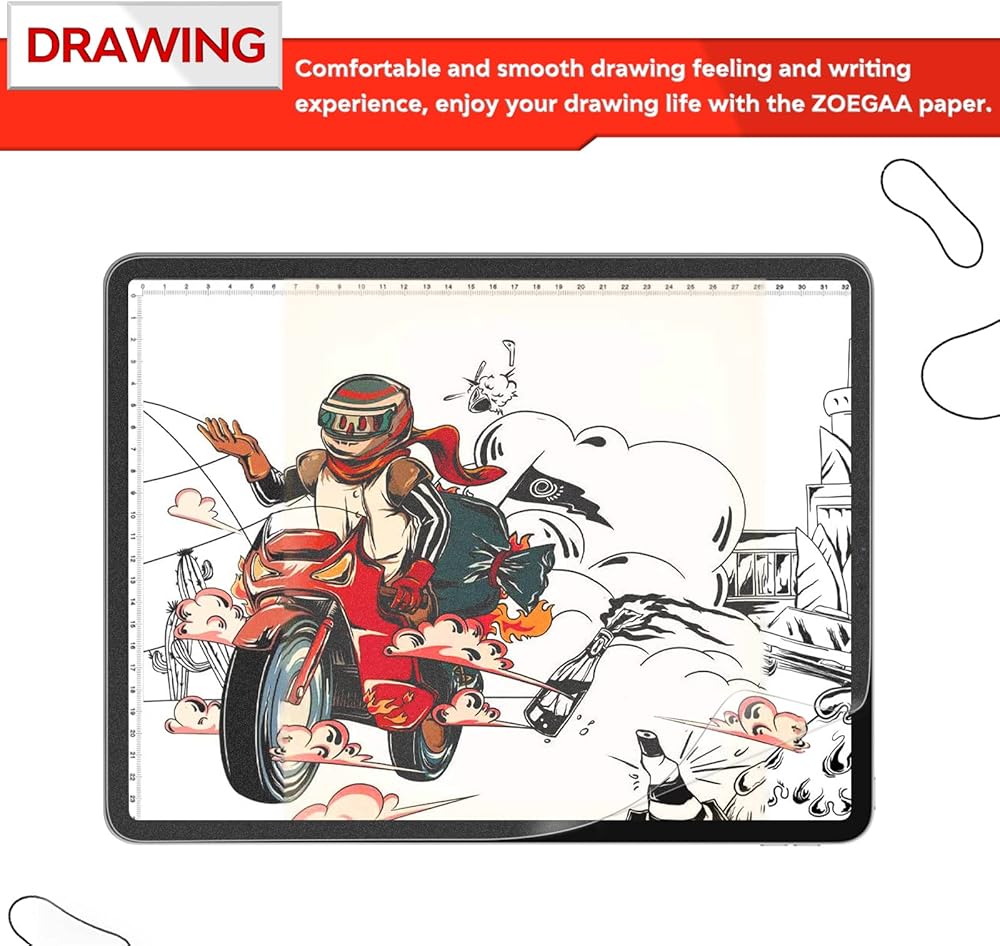 【Anti-glare】:iPad pro 12.9 screen paper provides a clear screen view. Easily use your tablet to paint outdoors without dazzling your eyes and reducing eye strain.