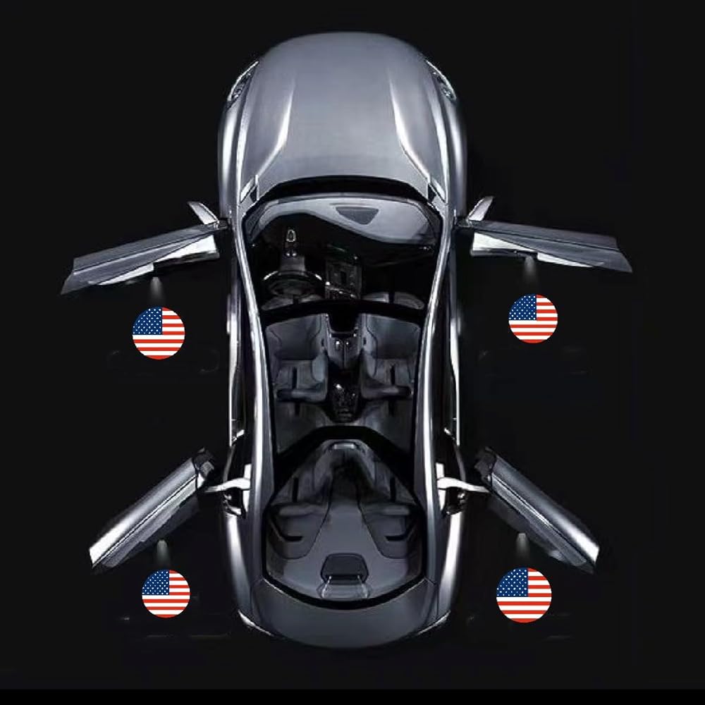 4PCS American Flag Logo LED Car Door Projector Welcome Lights Compatible with for Highlander/Camry/Prius/Sienna/Tundra/Venza/4 Runner Puddle Light Accessories