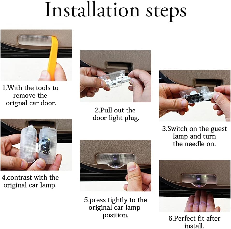 Plug and play. Easy to install, no drilling, no wiring, no damage to your car. Installation is simple, the original car door lights can be replaced directly.