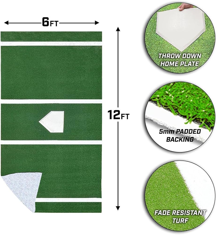 PREMIUM QUALITY: Constructed with durable materials, this 12' x 6' Indoor/Outdoor Baseball Softball Batting and Hitting Mat Pro is designed to withstand rigorous practice sessions, making it an ideal choice for both amateur and professional players.