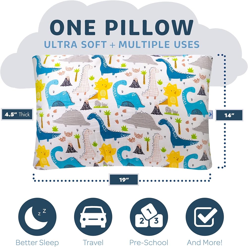 Pharmedoc Little Garoo Toddler Pillow with Pillowcase – 14x19 Pillow – Dino Cotton Toddler Pillows for Sleeping, Kids Pillow, Travel Pillows for Sleeping, Mini Pillow, Toddler Bed Pillows