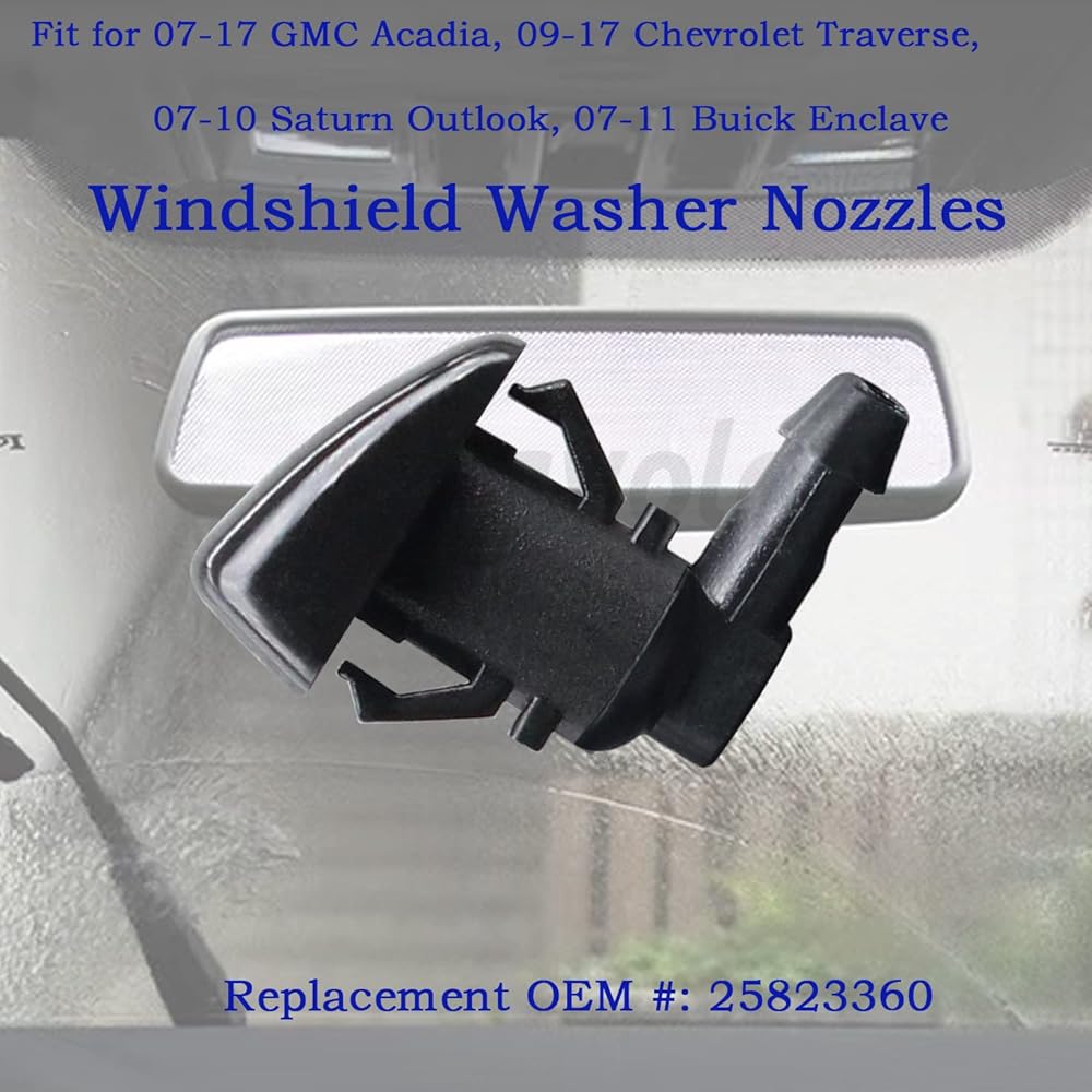 Quickly spray the windshield to help driving have a clear view. Package includes: 2PCS Windshield Washer Nozzles, 2 Meters Windshield Washer Hose,6 PCS Hose Connector.
