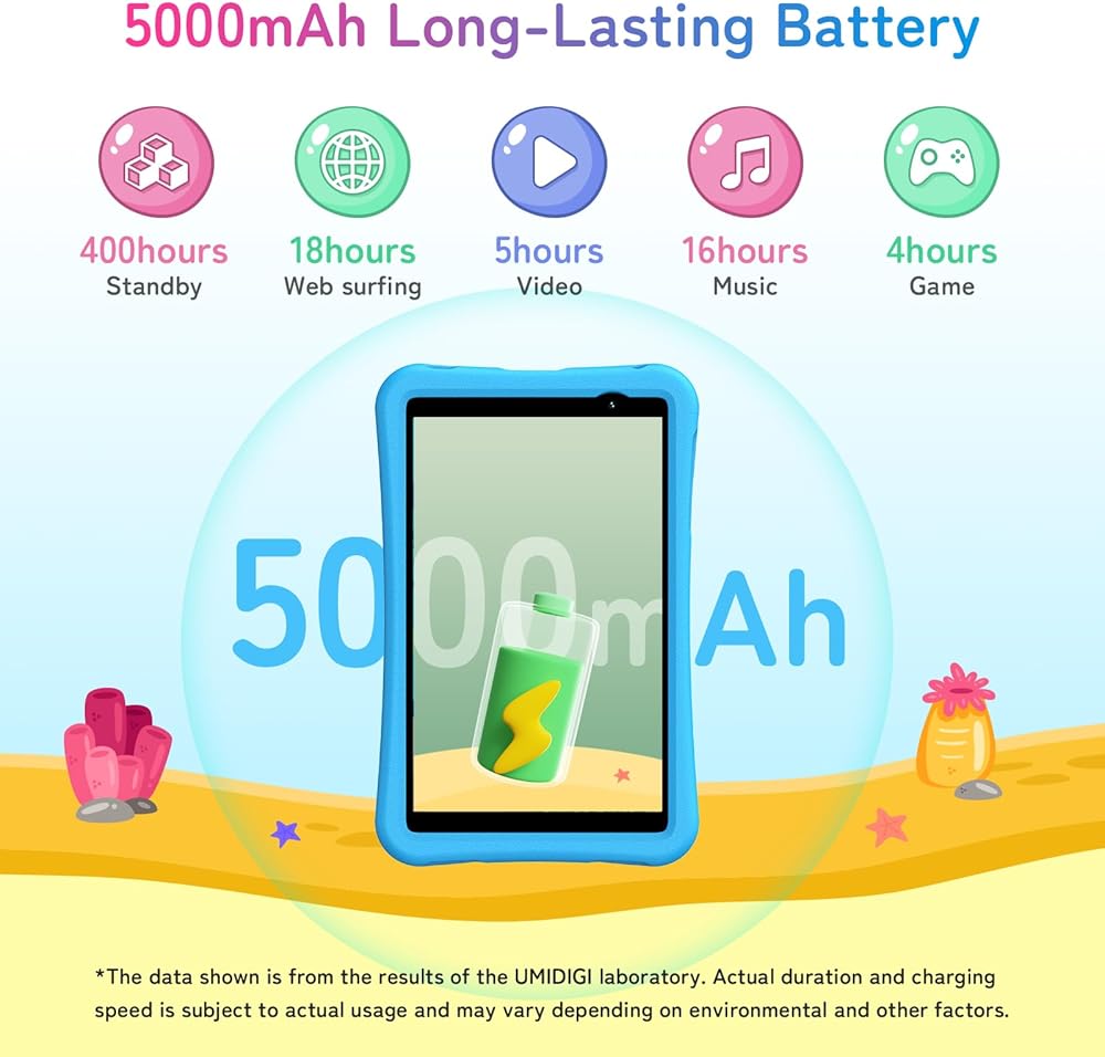 🎀🎀【Durable Protective Case & One Year Warranty】UMIDIGI kids tablet's advanced drop-resistant protective case, crafted from durable EVA material, ensures your kids and the tablet is shielded from accidents. This android tablet includes a convenient handle for easy carrying by children, it can also be adjusted to the perfect viewing angle when used as a stand. We provide 1-year warranty and lifetime technical support. If you have any questions, feel free to contact us!