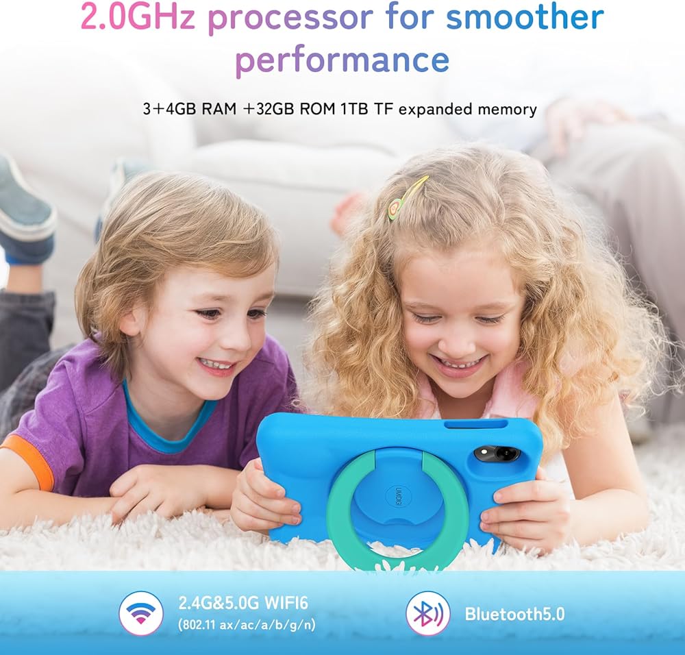 💪💪【Max Room for Everything & 1TB TF Expansion】UMIDIGI Kids Tablet with Memory Expansion Technology increases the RAM on this Android 14 tablet from 3GB to 7GB (4GB virtual memory). Kids can have all their favorite cartoons, photos, movies, and songs right at their fingertips. It's like having a world of fun in one little tablet! 32GB ROM and up to 1TB TF card expansion memory lets them add even more of their favorites, ensuring endless entertainment and excitement.