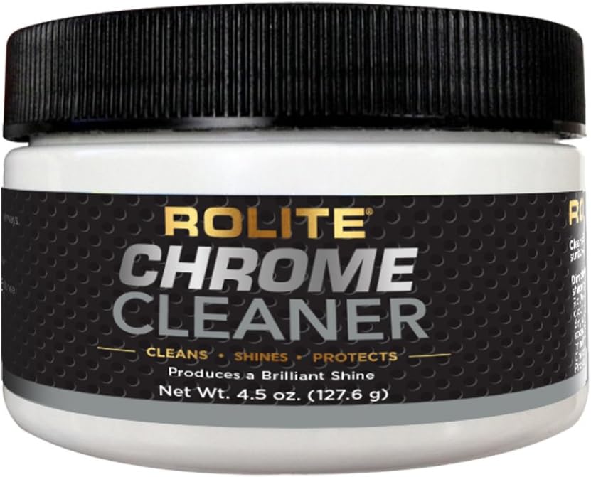 Rolite Chrome Cleaner Cleans, Shines and Protects , Produces a brilliant shine on all chrome plated surfaces in one easy quick step Directions: Some settling may occur during shipping, stir before using For best results, apply Rolite Chrome Cleaner with a clean, dry microfiber cloth – do not use water Surface should be clean, dry and free of dust prior to application Apply sparingly Rub gently in a circular motion For maximum shine, buff off immediately while Rolite Chrome Cleaner is still moist – do not let dry Product sold by weight not volume