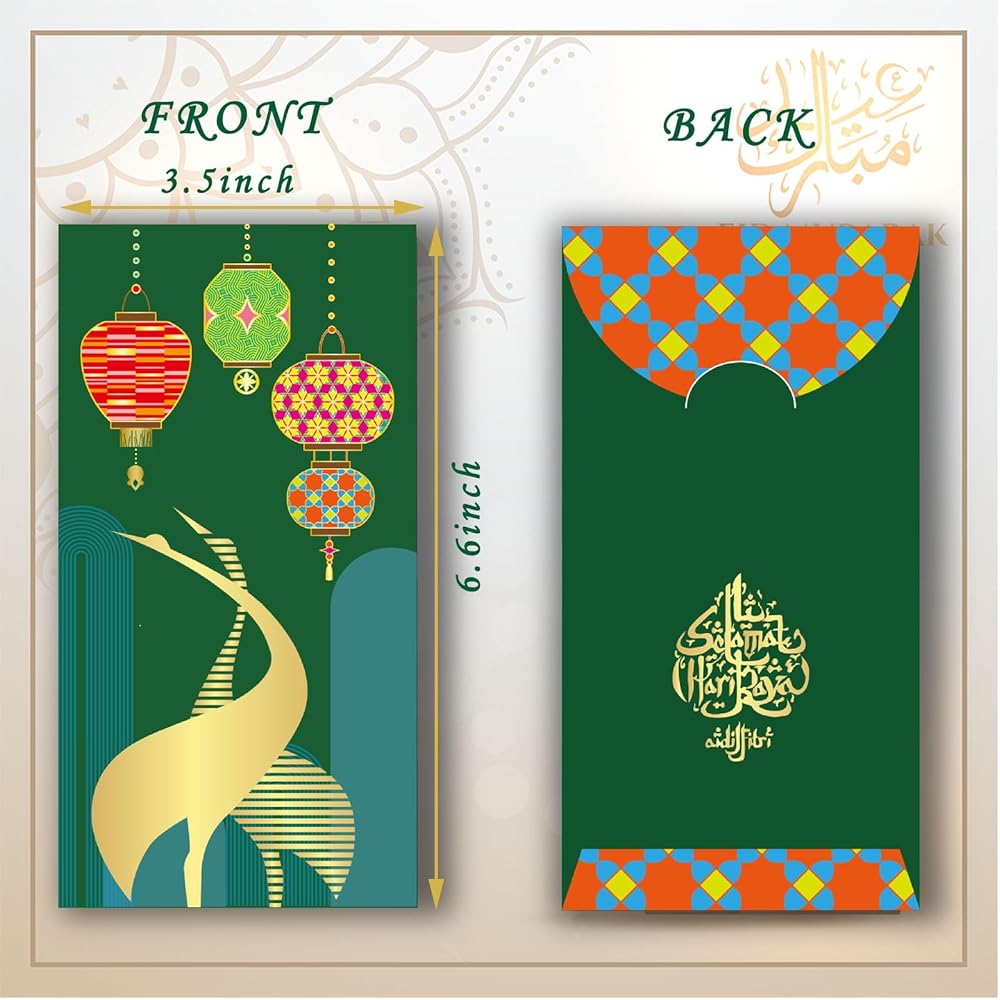 Perfectly Sized for Convenience: Our Eid Mubarak envelopes accommodate various denominations of cash comfortably. Their compact size allows for easy storage and portability in your bags, ensuring convenience wherever you go.