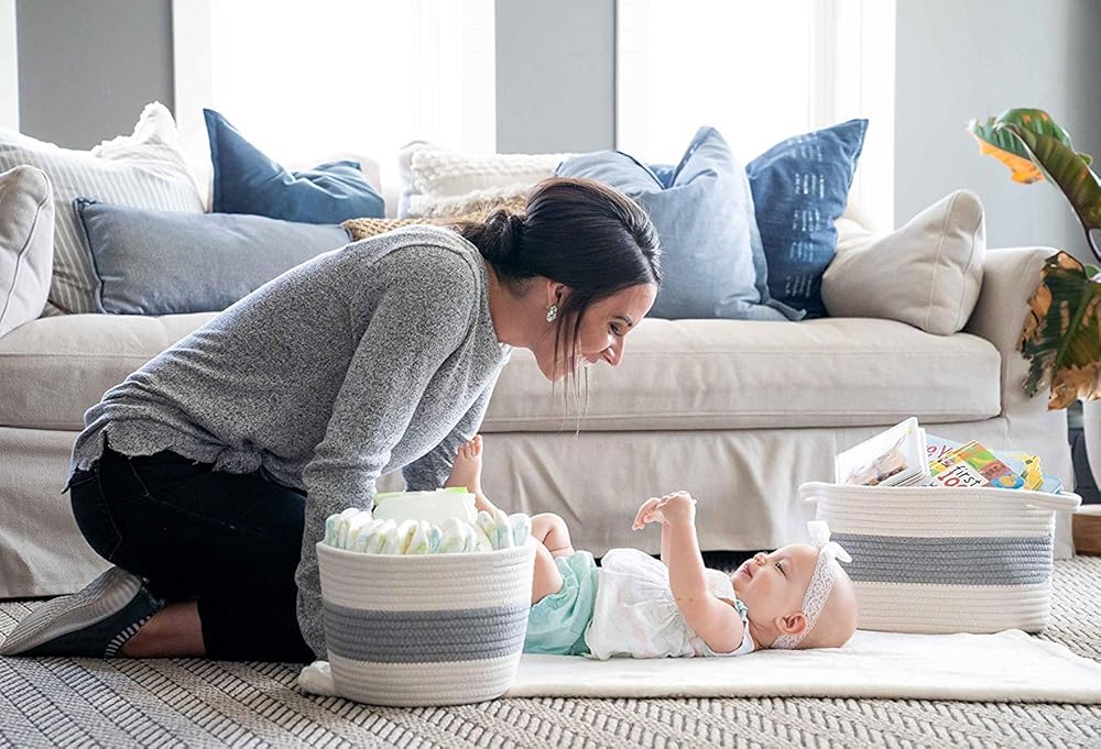 ✅SCRATCH-FREE DESIGN PROTECTS WALLS & FLOORS: You'll absolutely adore the soft, yet firm rope design of these stylish blanket storage bins – specially made to keep your floors and walls free of collision scratches. Looking to liven up your nursery decor or display baby toys and soft blankets in a more attractive way? Even when subjected to the roughest toddler play, you'll never have to worry about the laundry hampers leaving scuff marks or dings!