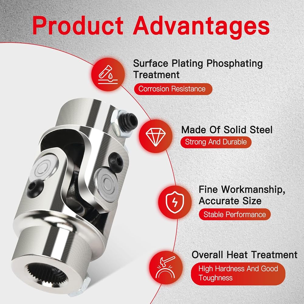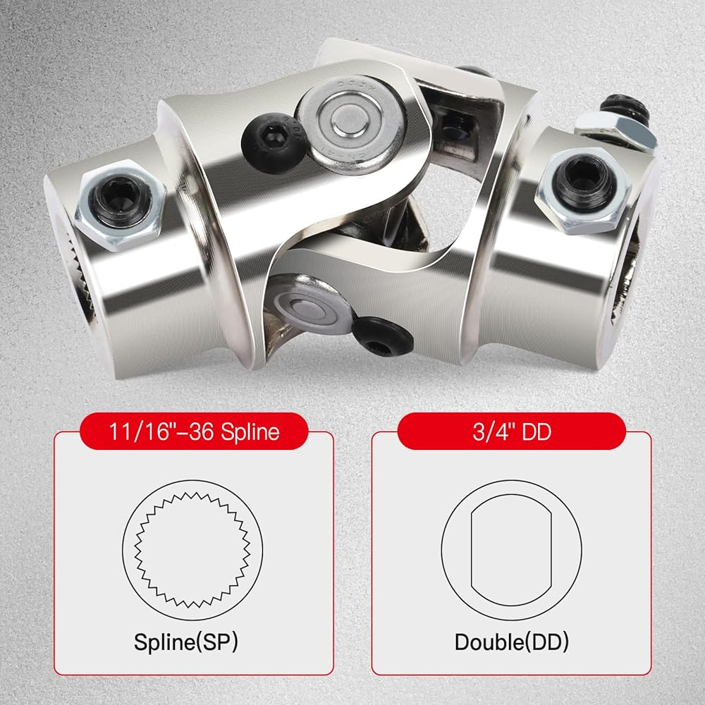 cciyu Chrome Steering joints 11/16-36 Spline X 3/4 DD U-Joint Shaft