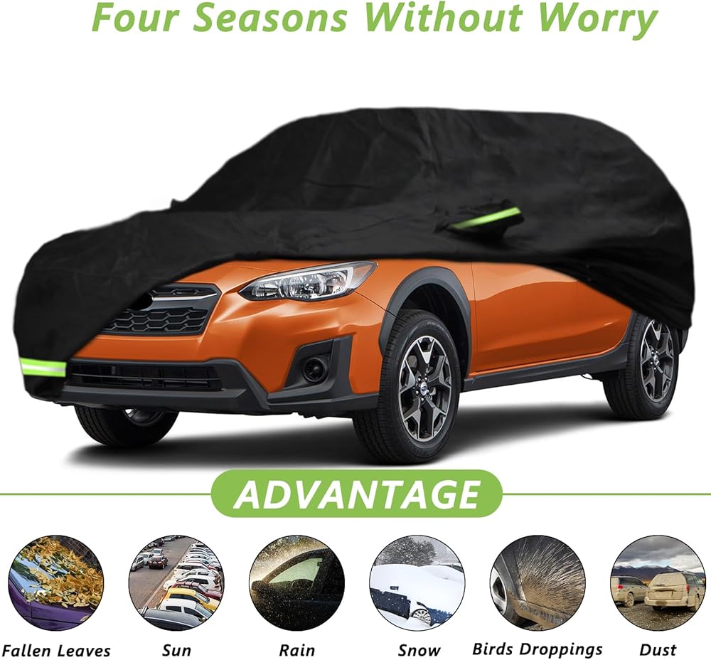 【PROTECTION FROM WEATHER ELEMENTS】YIXIN car covers provide overall protection of car from all the elements: dust, snow, industrial pollution, bird droppings, leaves, pollens, acid rain etc. When the wind blows, even if it is just a light wind, it can blow twigs, small pebbles etc, these can all do harm to your car.