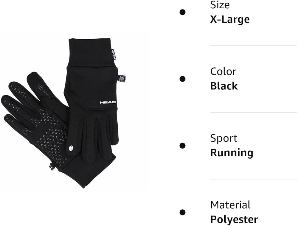 H E A D Digital Touch RUNNING GLOVES Senstaec Touch Screen Compatible Silicone Palm Design Provides Superior Grip Sleek Design and Style With Extended Cuff Perfect For The Cold Weather Athlete