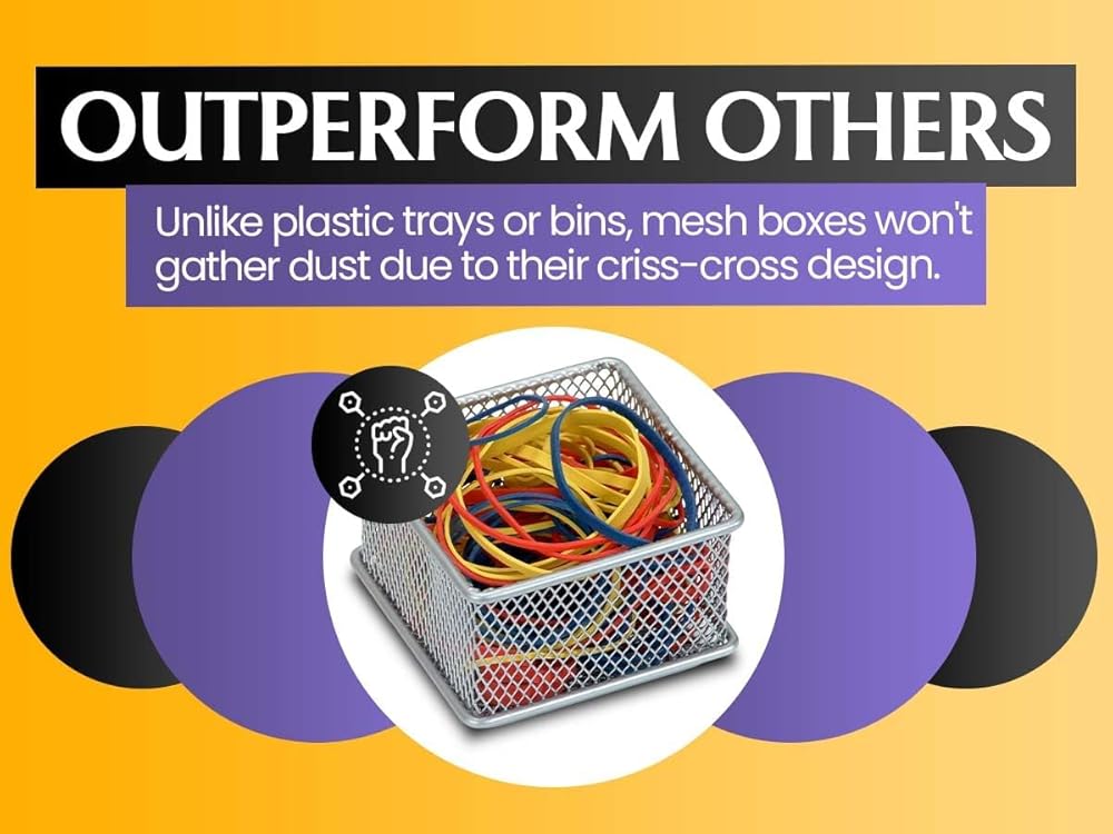 DURABLE AND LIGHTWEIGHT: Metal Construction, Spacious enough to fit various items and various size drawers. Steel wire mesh bins have spacious storage capacity. The steel mesh is durable and sturdy allowing you to organize a variety of products. These steel mesh bins can organize kitchen utensils and gadgets, stationery, craft supplies, keys, batteries, small tools, mail, stamps and more.
