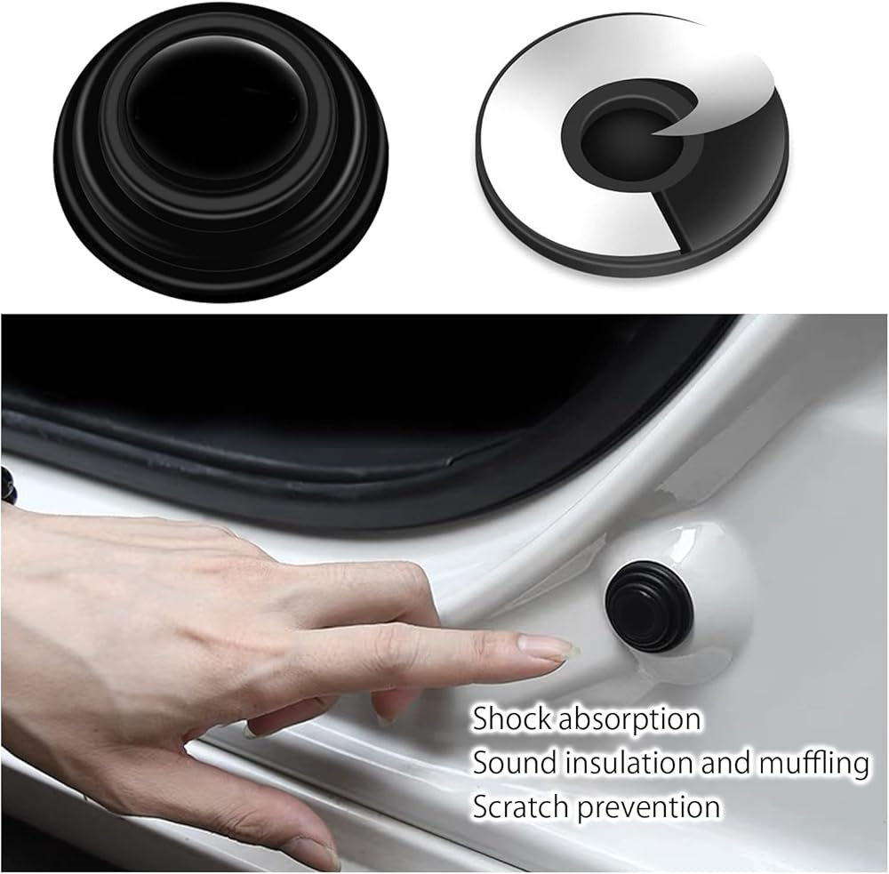 ④Easy To Install:Before installation, please wipe off any dirt on the car body . Since the back side is adhesive processed, it can be easily installed and firmly attached, first, tear off the protective paper , then stick the shock-absorbing gasket to the car body .