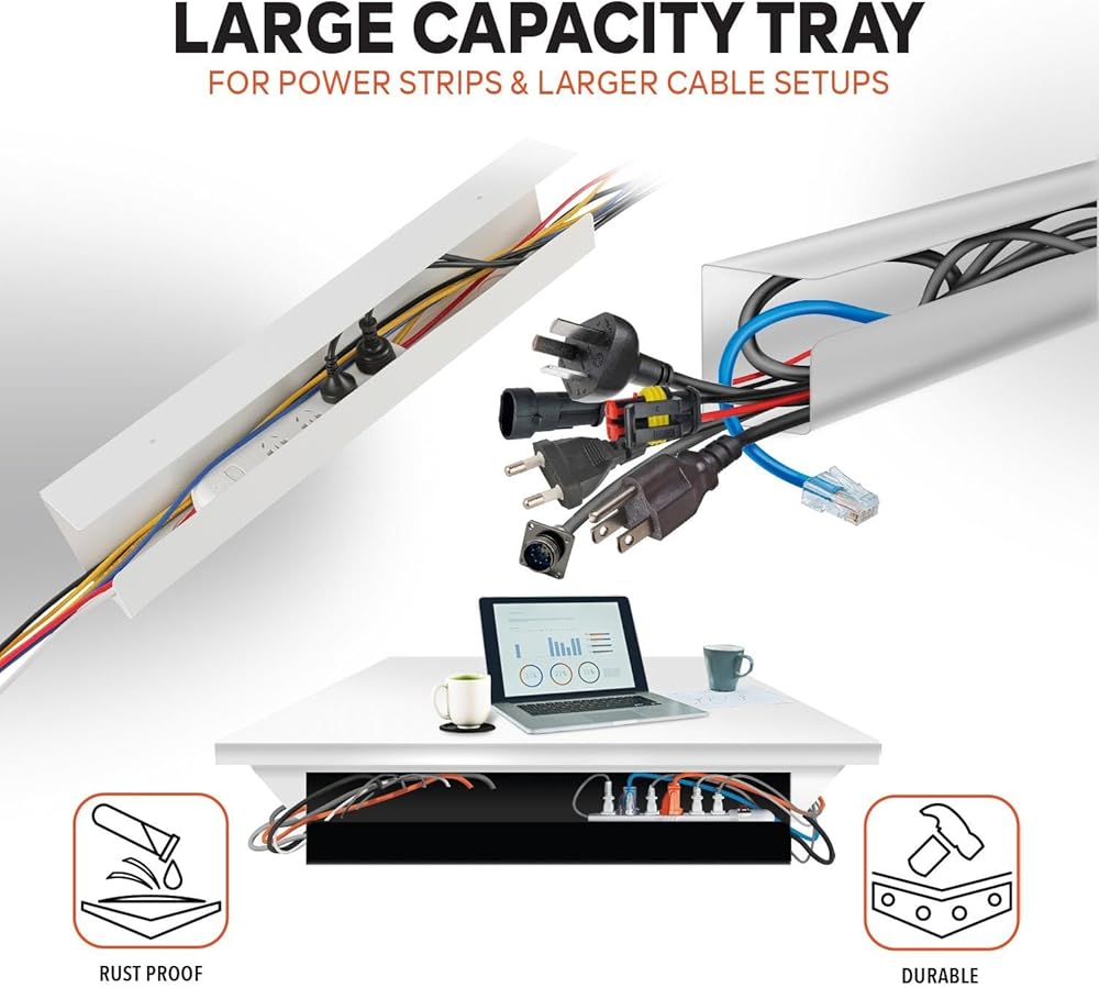 - Under Desk Cable Tray Organizer - An efficient solution for cable management. Install the tray under your desk and say goodbye to wire clutter.