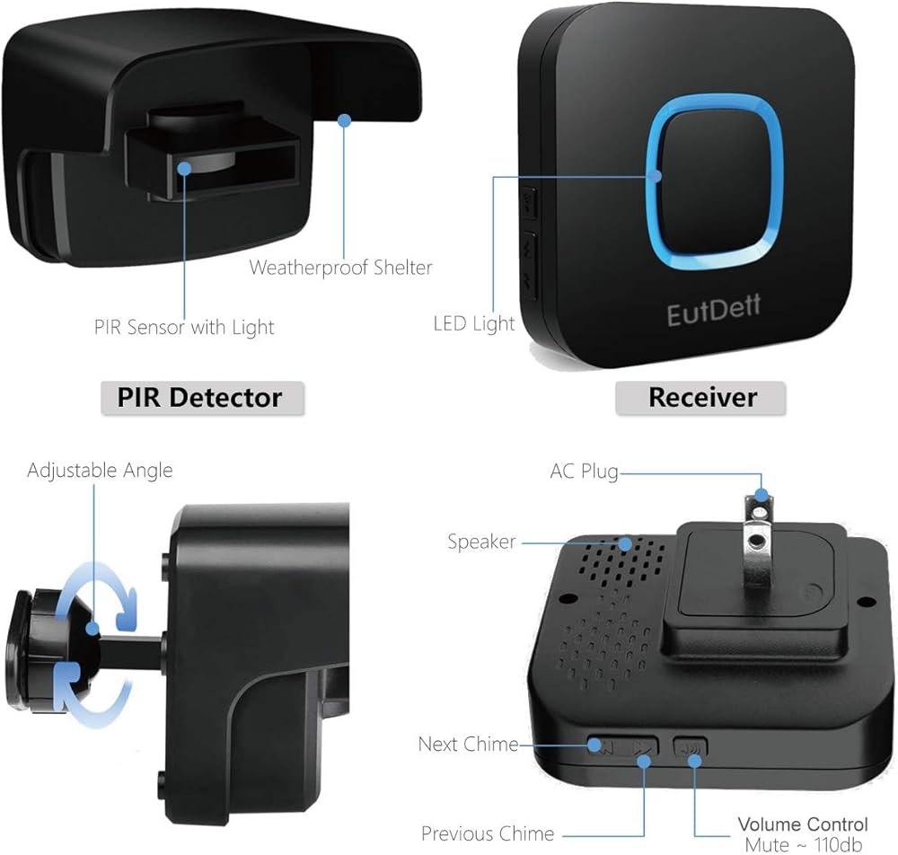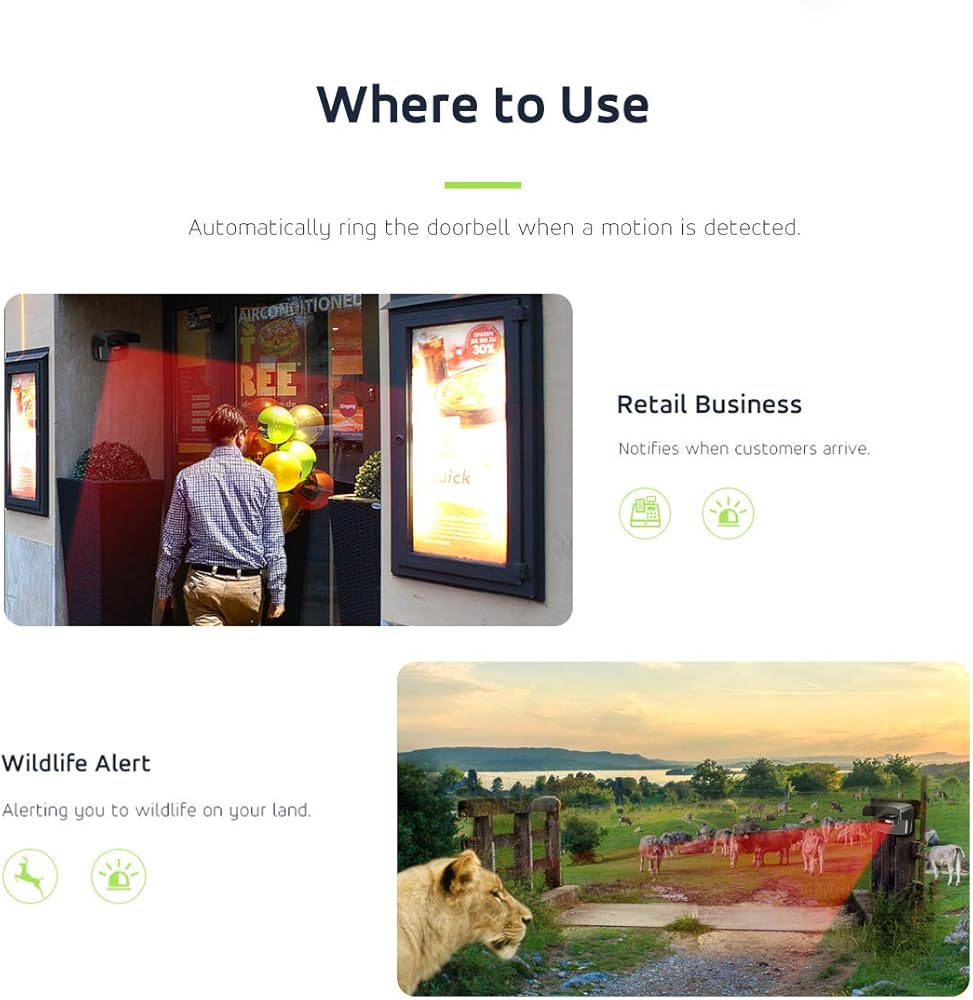 【Easy to Install】 Set up in minutes ! All hardware is in package. Simply pair the detector to the receiver, then plug in the receiver and mount the detector anywhere you want with screws. Also great to alert business owners with chime alarm when customers entering the stores.