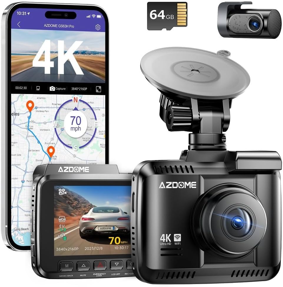 Super Night Vision: GS63H Pro dual dash cam delivers super night vision. Driving recorder is equipped with WDR and Sony IMX335 sensor. WDR dash cam could clearly capture all the road details in dim light.