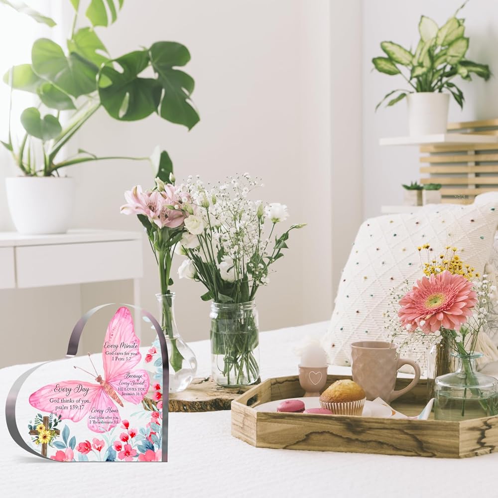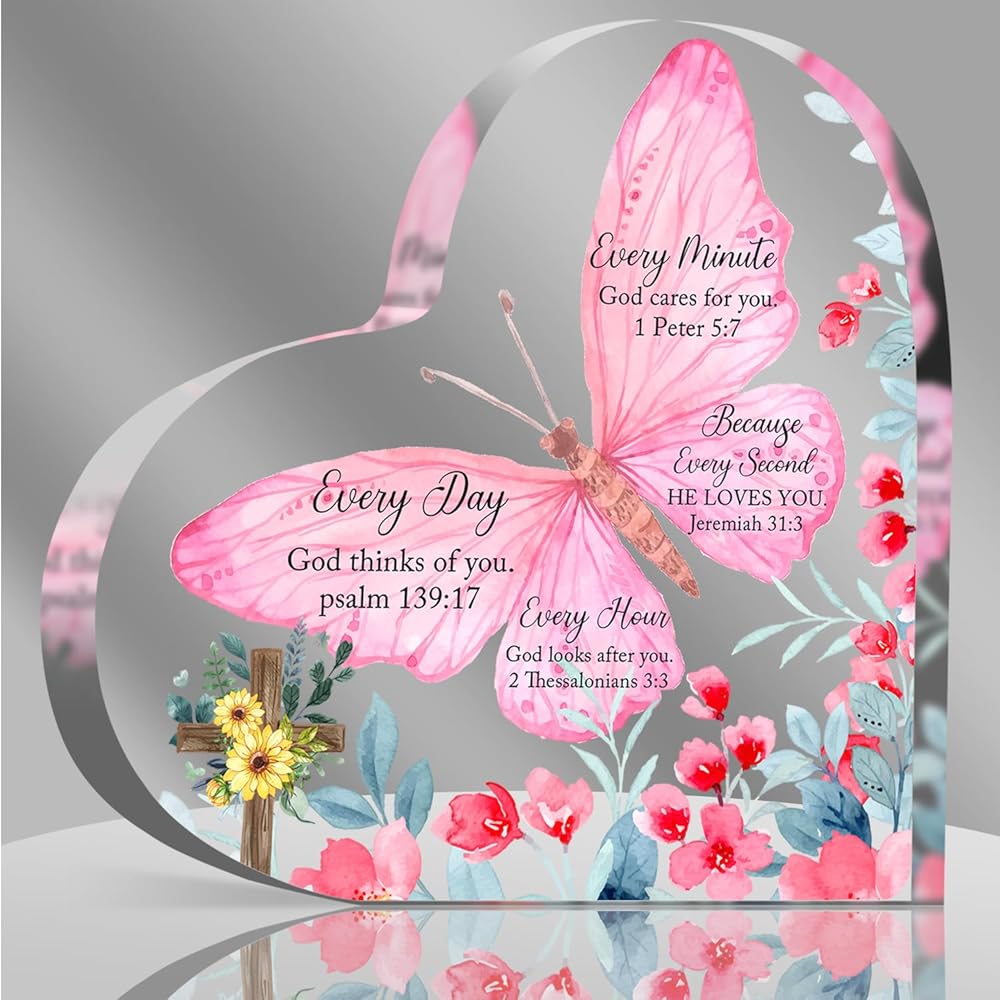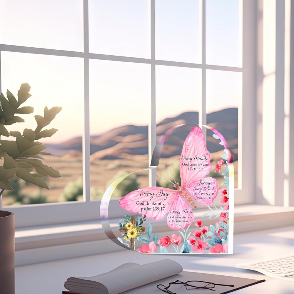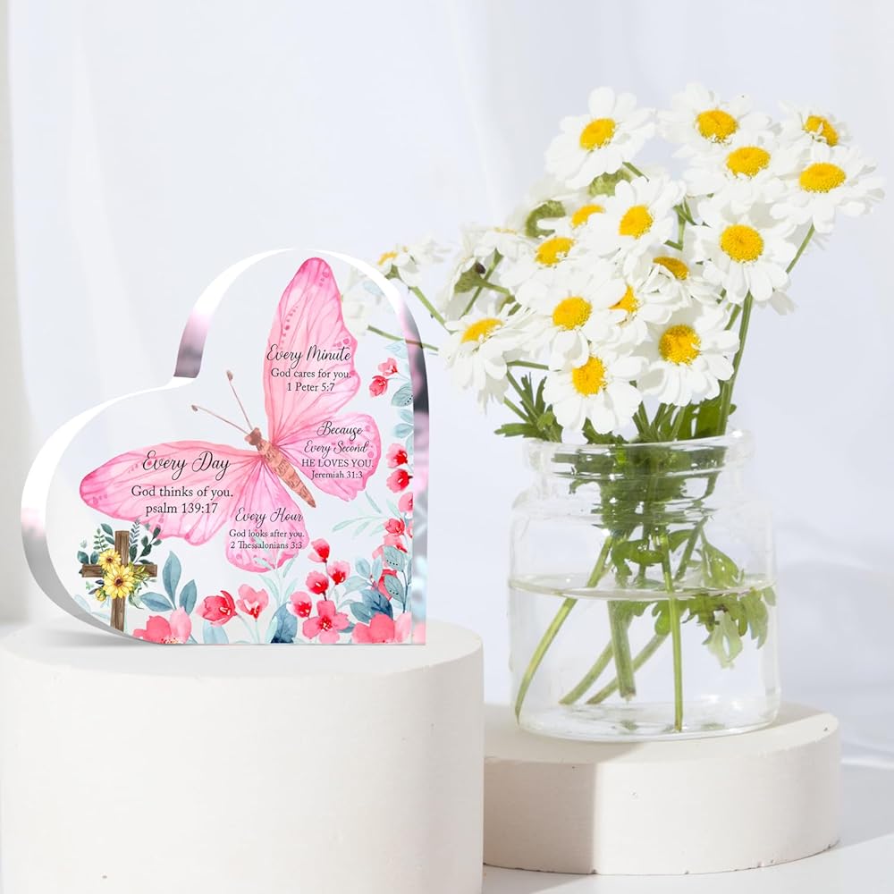 Christian Gifts Religious Gifts Scripture Gifts for Women Bible Verse Inspirational Heart-Shaped Acrylic Desk Decor Perfect Birthday Present for Women of Faith - Because Every Second He Loves