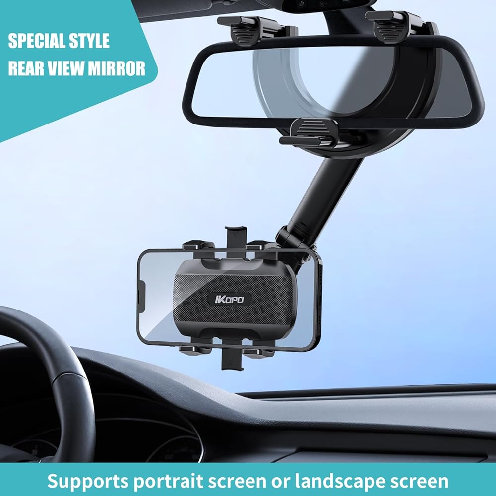 【Lightweight and stable】The rear view mirror phone holder with upgraded 4-corner locking mechanism, car phone holder with 3-sided fixed design. Ensure the stability of the rearview mirror holder and hold the phone without falling off. It can remain stable even on rough roads.