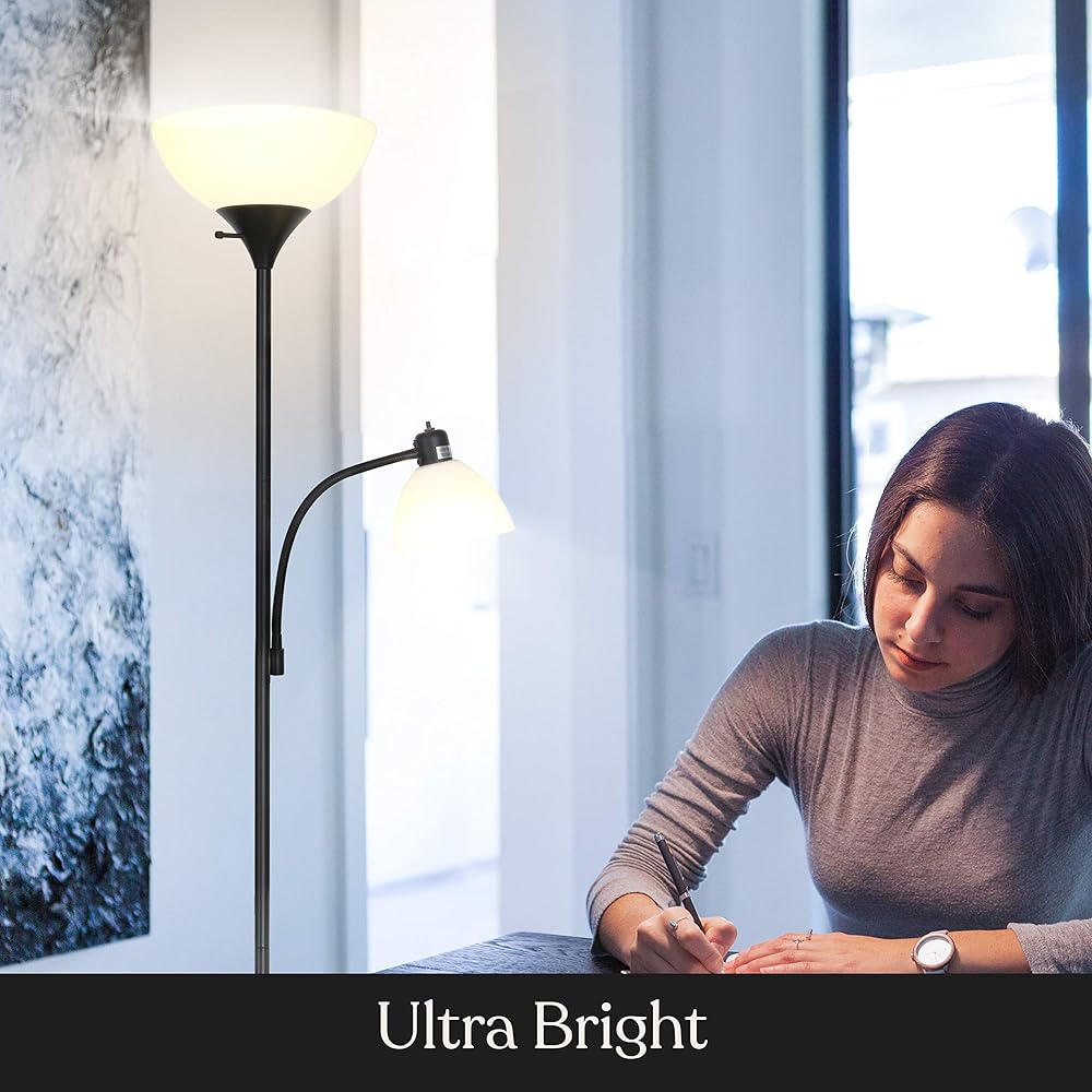 Super Bright LED Lighting: This Brightech floor lamp's built-in LED light with 2400 lumens is enough to light up your living room. Powered by 2 LED bulbs, 16W / 1600 lumens, and 9.5W / 800 lumens, the floor lamp generates 3000K warm white colors. Whether you want to read, write, or simply relax, the standing lamp provides ample illumination without straining the eyes, an ideal floor lamp for your living room and bedroom.