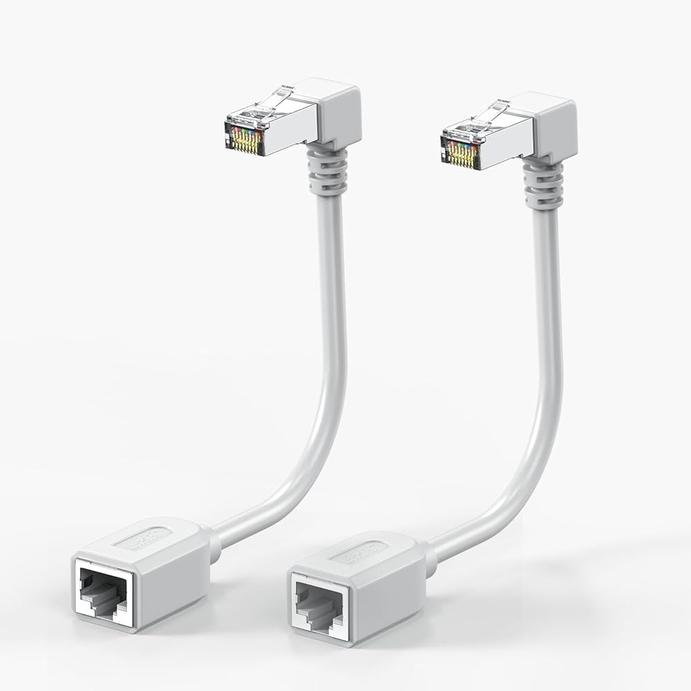 2Pack Cat6 Extension Cable 4inch 90 Degree UPward Extend your existing Ethernet Connection to Network device,Use Angled Ethernet Cable to Connecting in Tight Spaces Behind Furniture or in a Network Closet or Wall Mounted TV.