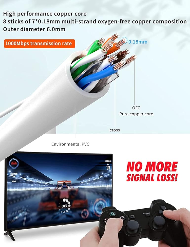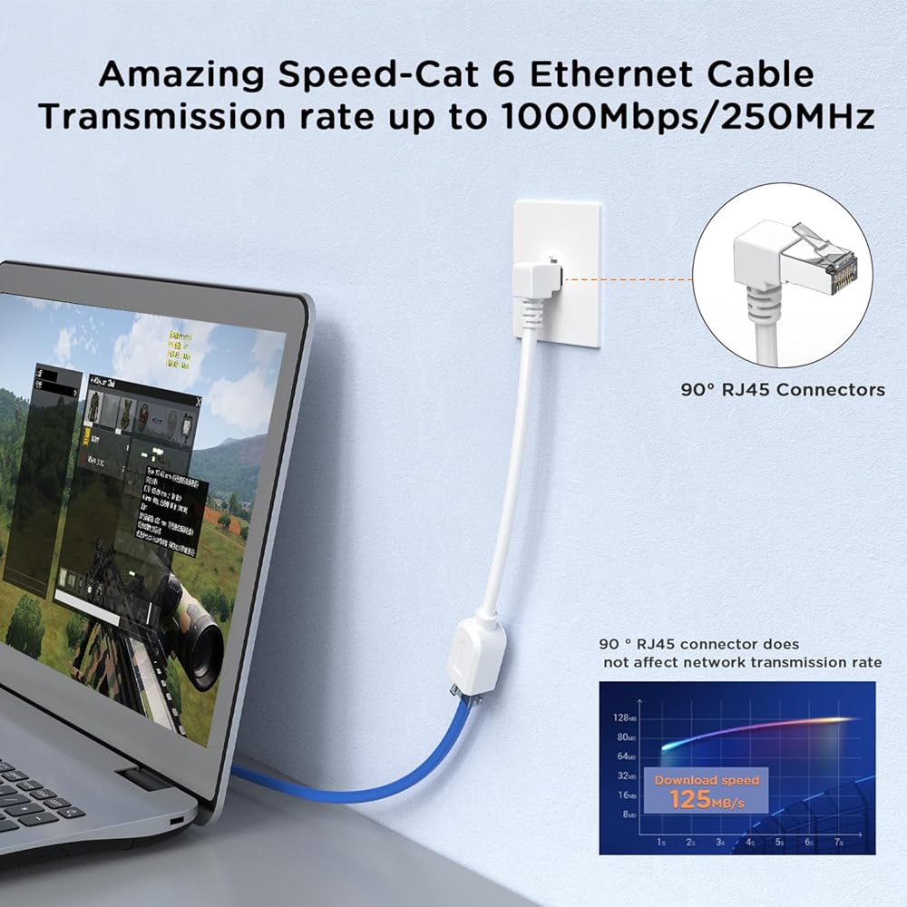 CAT6 Right Angle Network Extension Cable,Used for network adapters, can connect desktops, laptops, routers, TV boxes, printers, etc. It can also be backwards compatible with CAT5,5e cables, and can also be used with CAT7 Ethernet cables.