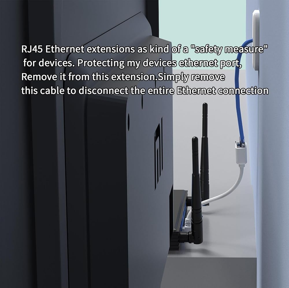 RJ45 Male to Female Ethernet extensions as kind of a "safety measure" for devices. Protecting my devices ethernet port, Remove it from this extension.Simply remove this cable to disconnect the entire Ethernet connection.