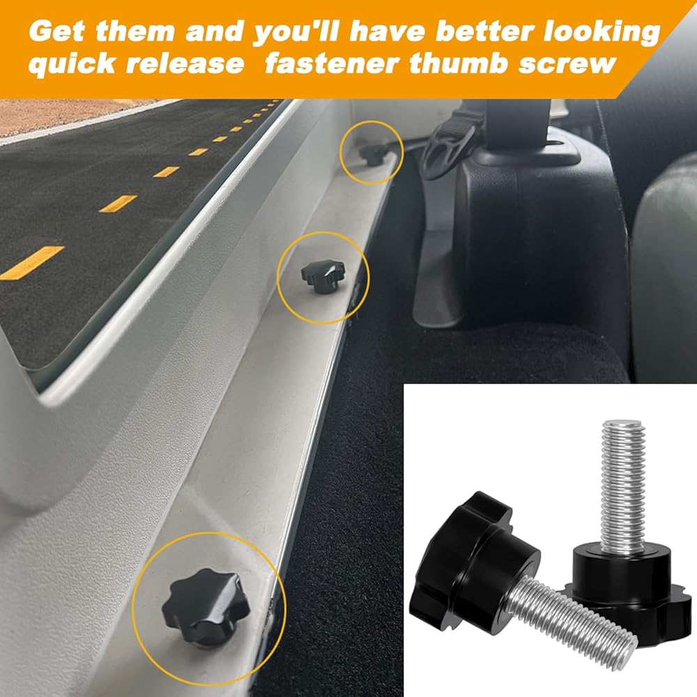 Friendly installation- Quick removal bolts release faster than the factory one, no need for any tools, making it much easier to put on and remove your hardtop. while providing a better appearance than the factory fasteners.