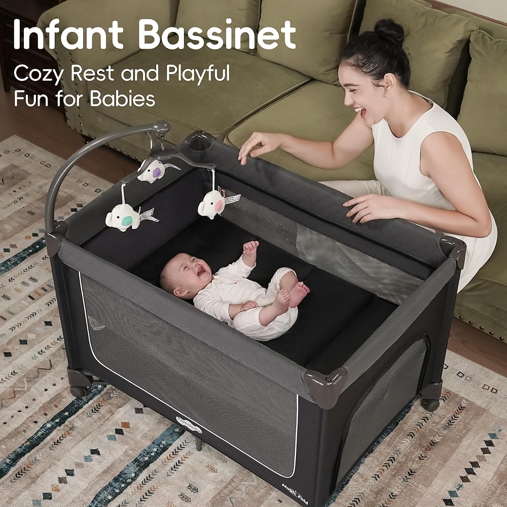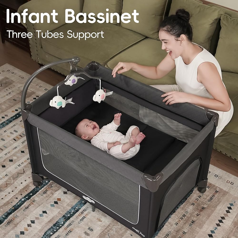 【Easy To Assemble & Portable Travel Design】 Easy and quick to assemble and fold without any other tools. And it is equipped with carry bag and can be used as a travel crib for outdoor use.
