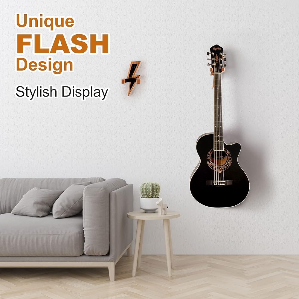 EASY TO INSTALL. The holder is easy to assemble and use, making it the perfect choice for anyone who loves music. Wooden round hook, the end of the hook is easily inserted into the main part of the wall-mounted hook, effectively preventing the guitar from sliding and falling.