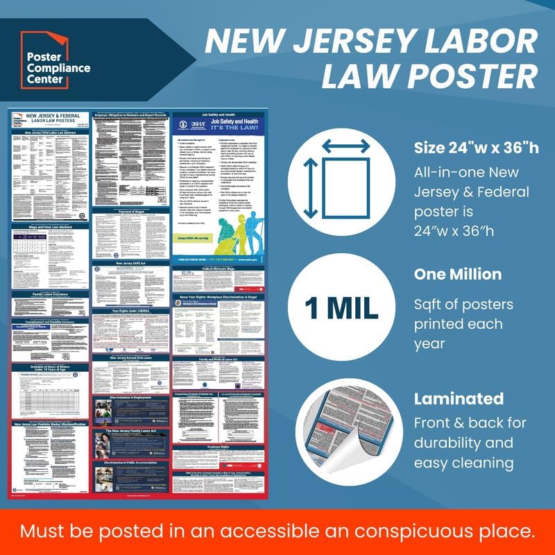 Labor Law Posters - New Jersey Labor Law Poster State, Federal, OSHA Compliant, Accurate & Up to Date, Laminated Labor Law Poster New Jersey, 24"w x 36"h (Bundle)