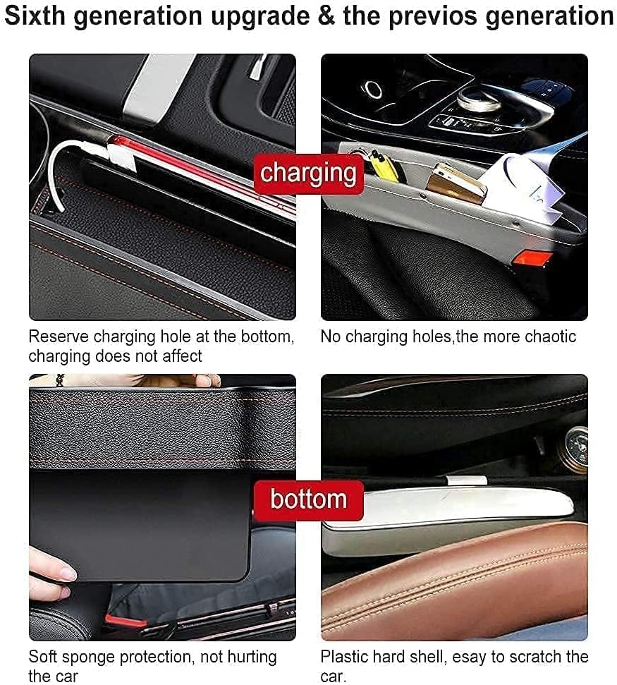【Upgrade Version】- Stop things from falling through the car seat gap while you add an extra storage space right next to you so can enjoy more your car and keep yourself focused on the road. Reserve charging hole at the bottom, charging does not affect compared with the previous generation.