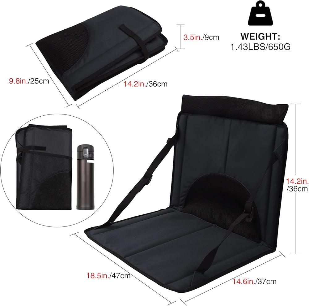 للعديد من المناسبات: الحجم غير المطوي هو 18.5 × 14.6 × 14.2 بوصة. وسادة مقعد الاستاد الخاصة بنا مثالية لألعاب الأحداث الرياضية. كما يمكن استخدامه ككرسي أرضي للتخييم لحقائب الظهر وحفلات الحديقة والحفلات الموسيقية الخارجية وما إلى ذلك.