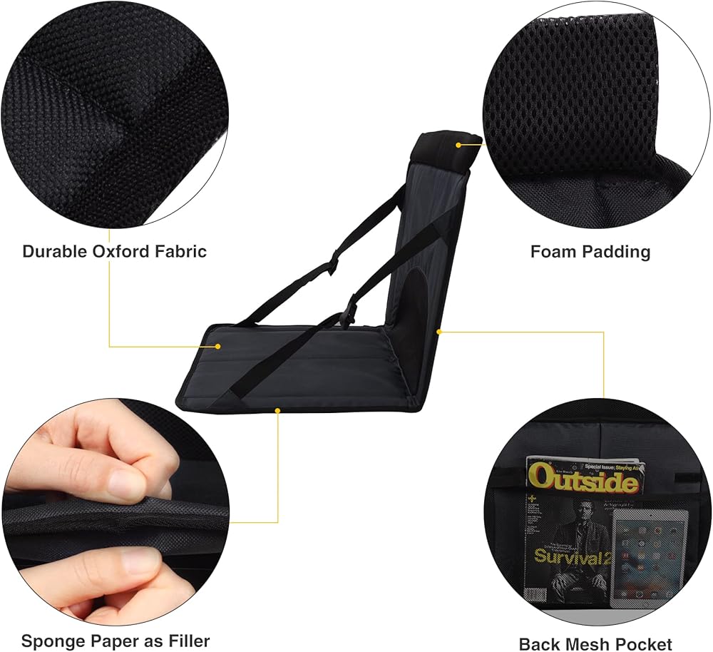مسامي ومريح: يأتي مقعد الاستاد المحمول مع دعم للظهر، مما يوفر لك ما يكفي من الراحة والدعم. بالإضافة إلى ذلك، فهو مصمم بشبكة مسامية لمنع التكدس إذا جلست لفترة طويلة.