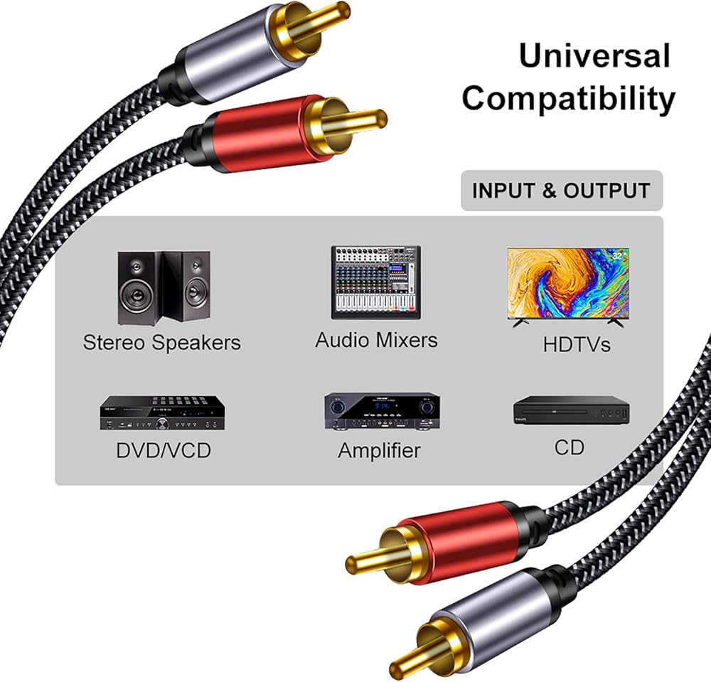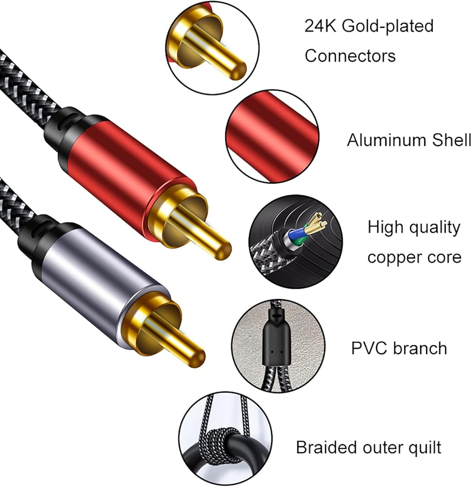 Hi-Fi Sound Quality Design: With 24K gold-plated and double shielded, provides rca cable optimal signal transmission and delivers clear and crisp audio and endues no-loss, noise-free, reliable performance.