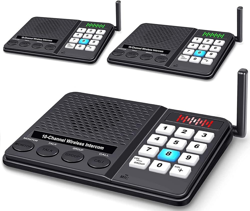 ✅【Intercom System (3 Privacy Codes x 10 Channels)】- This wireless intercom system with 3 privacy codes (A, B, C) and 10 channels (0-9) for you to communicate with others in a secure intercom system. Perfect for one-to-one, one-to-many communication, widely used in office, home, restaurant, hotel, retail store, etc
