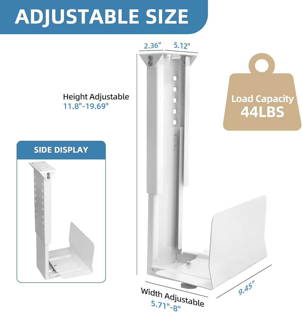 Adjustable & Universal - Fit most computer cases on the market with adjustable width from 5.71" to 8" and adjustable height from 11.8" to 19.69", holding up to 44 lbs.