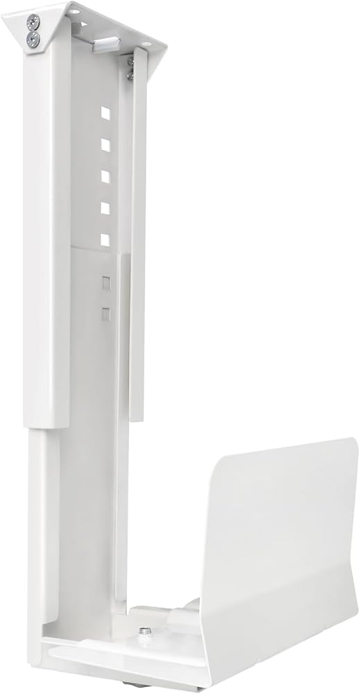 Heavy Duty Computer Wall Mount, Also Great for PC Mount Under Desk - Height Adjustable from 12" to 20", Width Adjustable from 5.7" to 8" - Computer Case Stand PC Holder Under Desk or On Wall, White