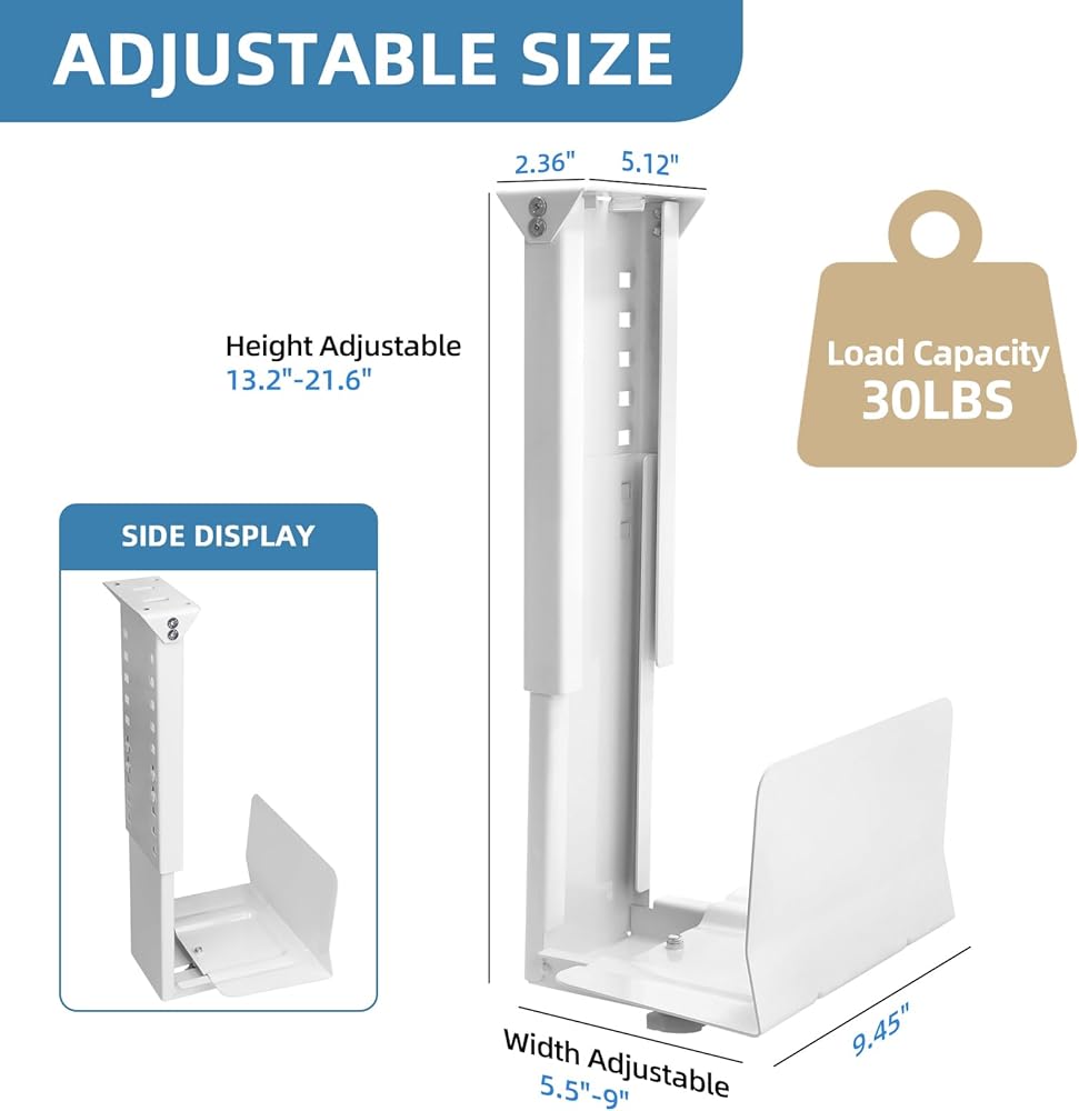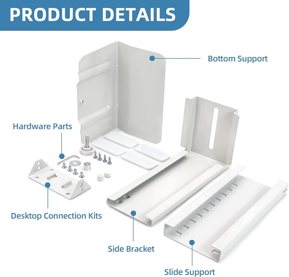 Under Desk Mount & Wall Mounted - Hold the CPU Tower under your desk while keeping it off the floor, to help you sit comfortably and your PC dissipate heat effectively.