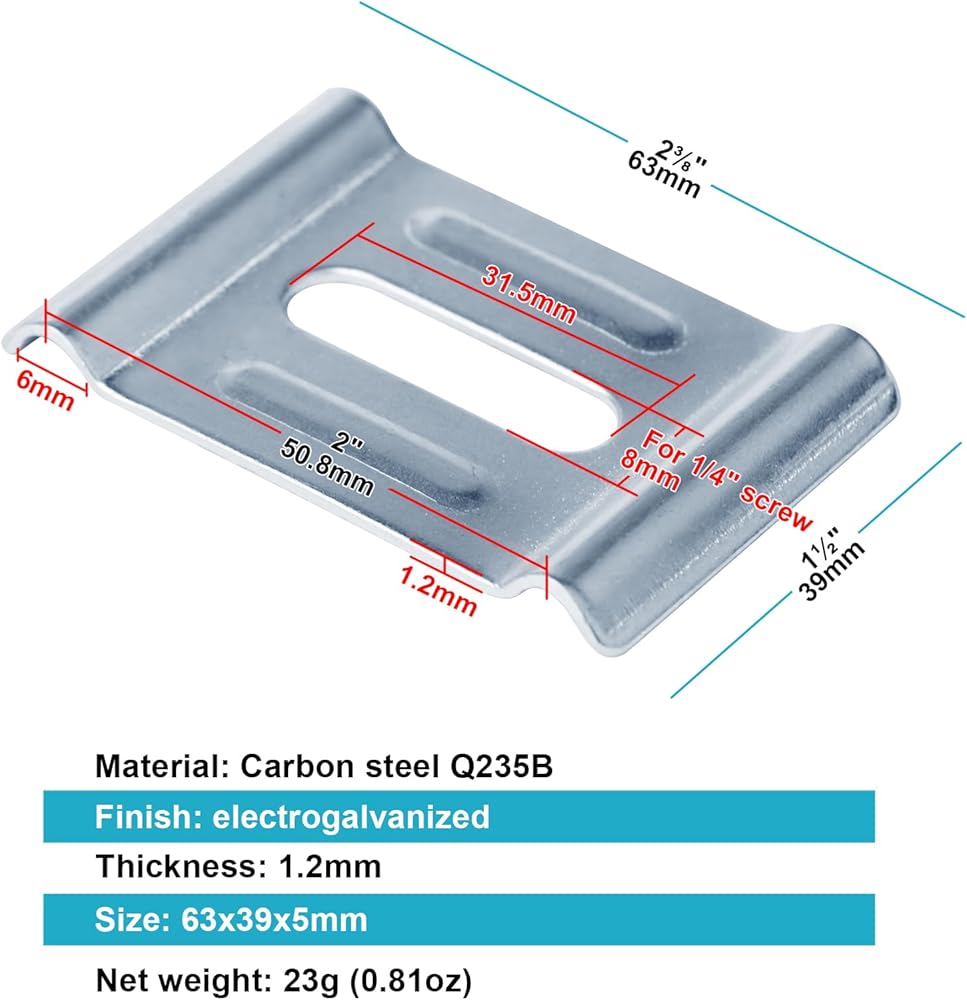- Thickness 1.2mm, Slot hole size: 31.5 x 8mm, fit with 1/4" bolt.