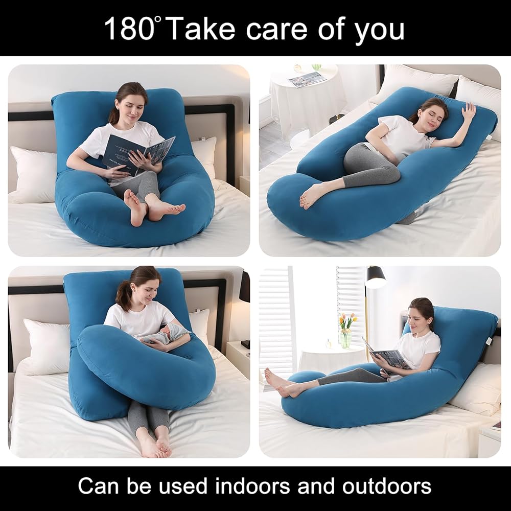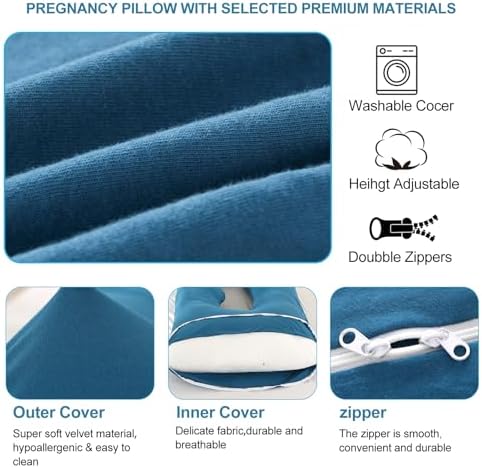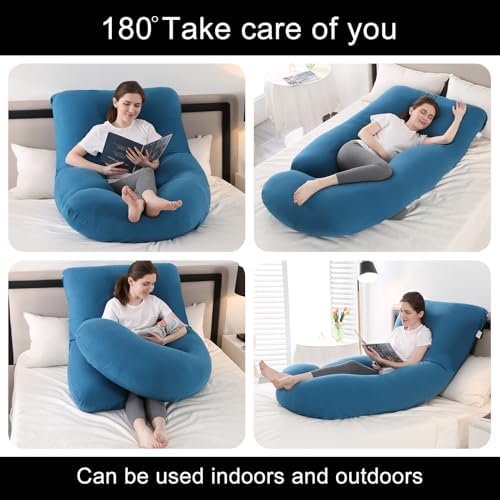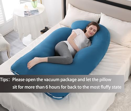 Jcickt Pregnancy Pillow U Shaped Full Body Pillow with Knitted Cover Maternity Pillow for Pregnant Women,Blue, 60" Full Body Pillows