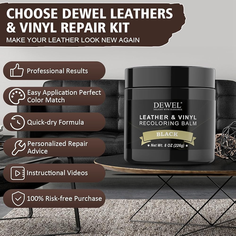 DEWEL Leather Recoloring Balm, Black Leather Color Restorer for Scratched and Faded, Leather Scratch Remover, Upgrade Leather Repair Kit for Restore Couches, Car Seats, Shoes, Boots